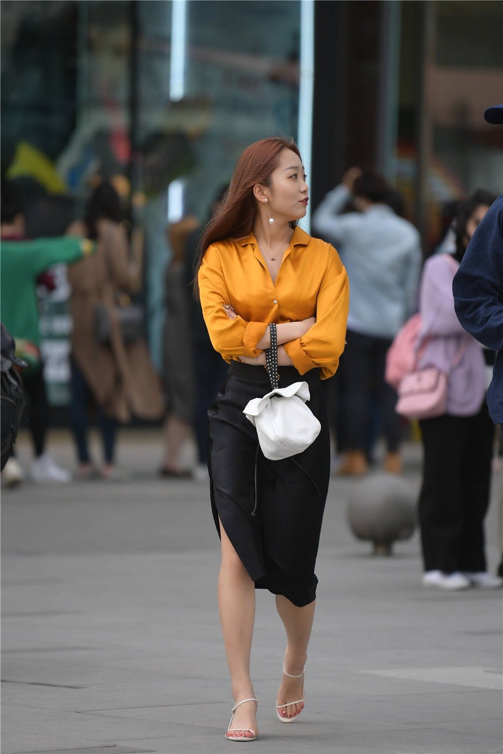 看着别人搭配,也会羡慕一下,那么自己也要琢磨怎么去搭配,这位美女选择白色的一字带细跟凉鞋,鞋跟属于比较低的款式,不会很累的高度,大多数的美女都可以轻松搭配,一字带很细,所以看着更加简约一些,搭配黑色的高腰长裙,裙摆到膝盖下面,非常简约的设计风格,侧面开叉,简单的搭配,一件黄色的衬衣,很舒服的搭配,也穿出简约的风格,如果你也想搭配,可以尝试一下。