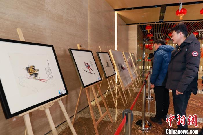 现场参与者正在欣赏冬奥主题作品展 “为奥运喝彩”组委会提供