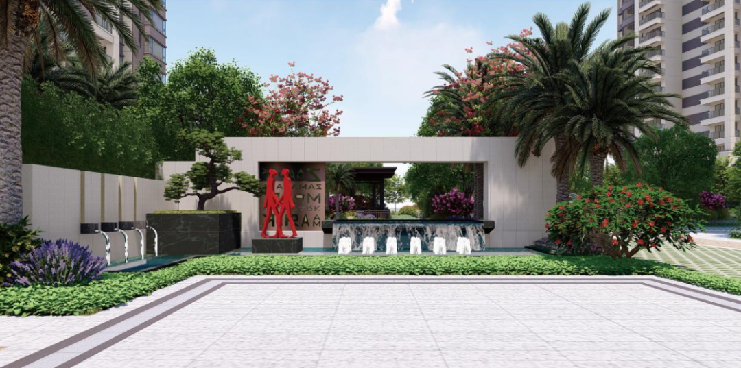 一进小区大门,层层递进的阶梯,彰显着回家的仪式感,颇具中国文化艺术的新中式风格大门,将大家风范的气质显露得淋漓尽致。