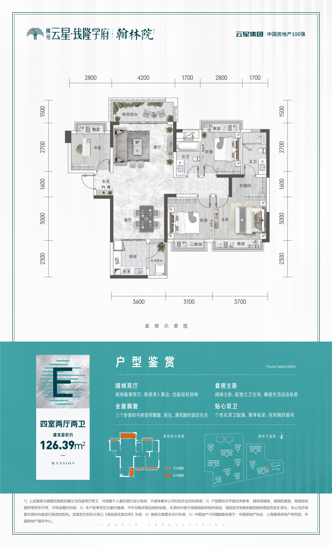 建面约126㎡的四房两厅两卫的户型,是云星·钱隆学府畅销的户型之一,4.2米的客厅开间,承载一家人的欢声笑语;餐厨一体,承载人间烟火,生活的美味汇集于此。享有衣帽间的主卧,更彰显主人的尊贵身份,书房的加持,尽显居者的人生修养,适合三代之家。