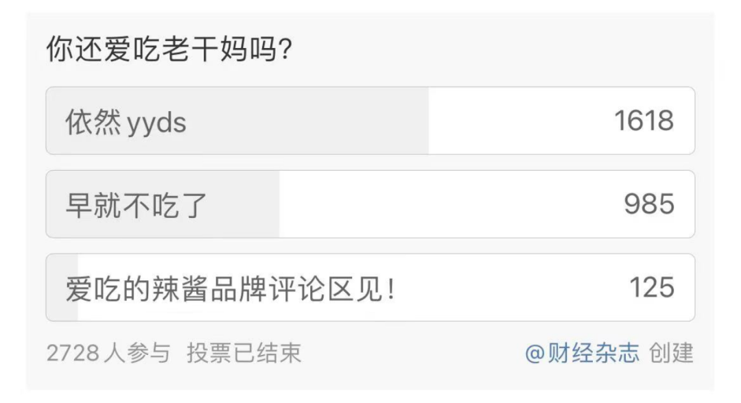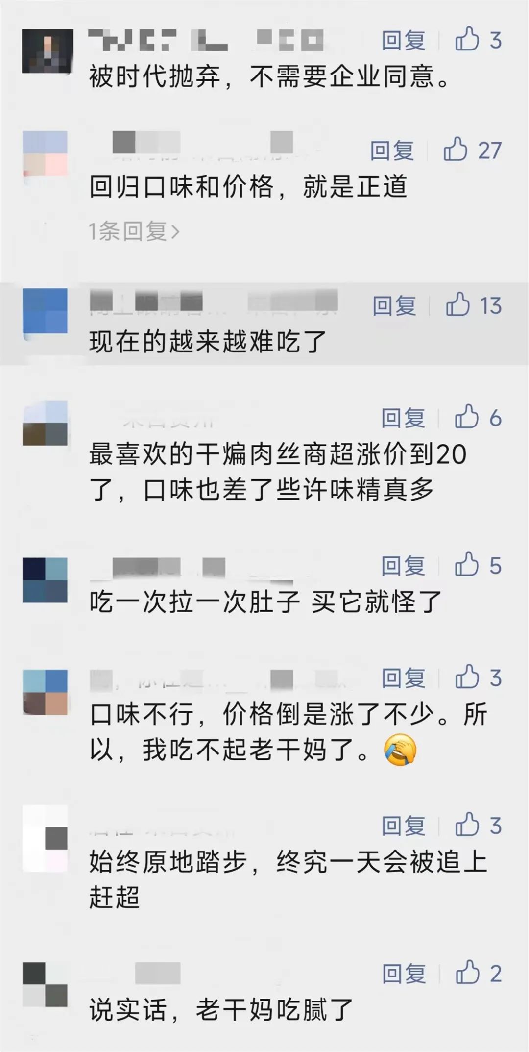 此前,有不少消费者在网络上吐槽“老干妈味道变了”。此外,“涨价”也是老干妈慢慢失去产品吸引力的原因之一。