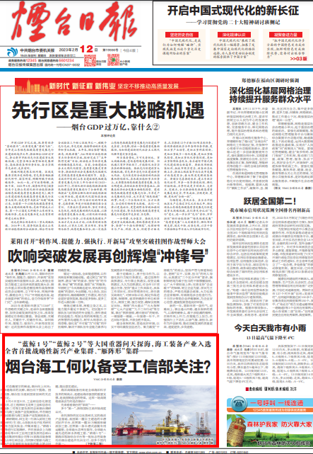 2022年,烟台海洋生产总值突破2300亿元,比上年增长11%以上。其中,海工装备产业实现产值263亿元,同比增长19.5%,拥有规上企业26家,初步形成了以深海油气、海上风电、高技术船舶为主体的产业体系。