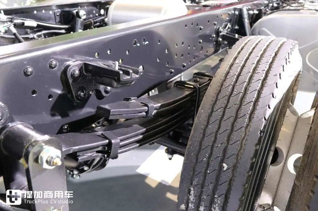 除大梁之外,钢板弹簧悬架也非同寻常,江铃凯运+的钢板弹簧采用的是合金弹簧钢,强度高,即便是前3后3+2的组合,也可以轻松胜任重载的需求。