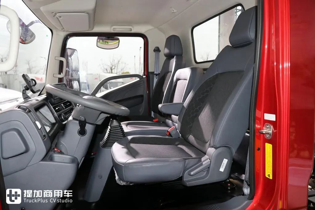 在山区行驶,颠簸路段无法避免,所以凯运+山区版的主驾驶座椅采用的是减震座椅,坐垫靠背海绵包裹性好,侧面带有可调节扶手,极大的增加了车辆的舒适性。