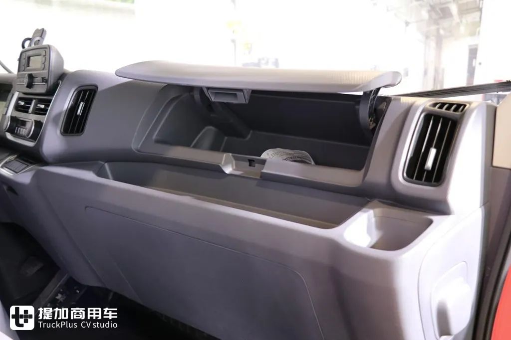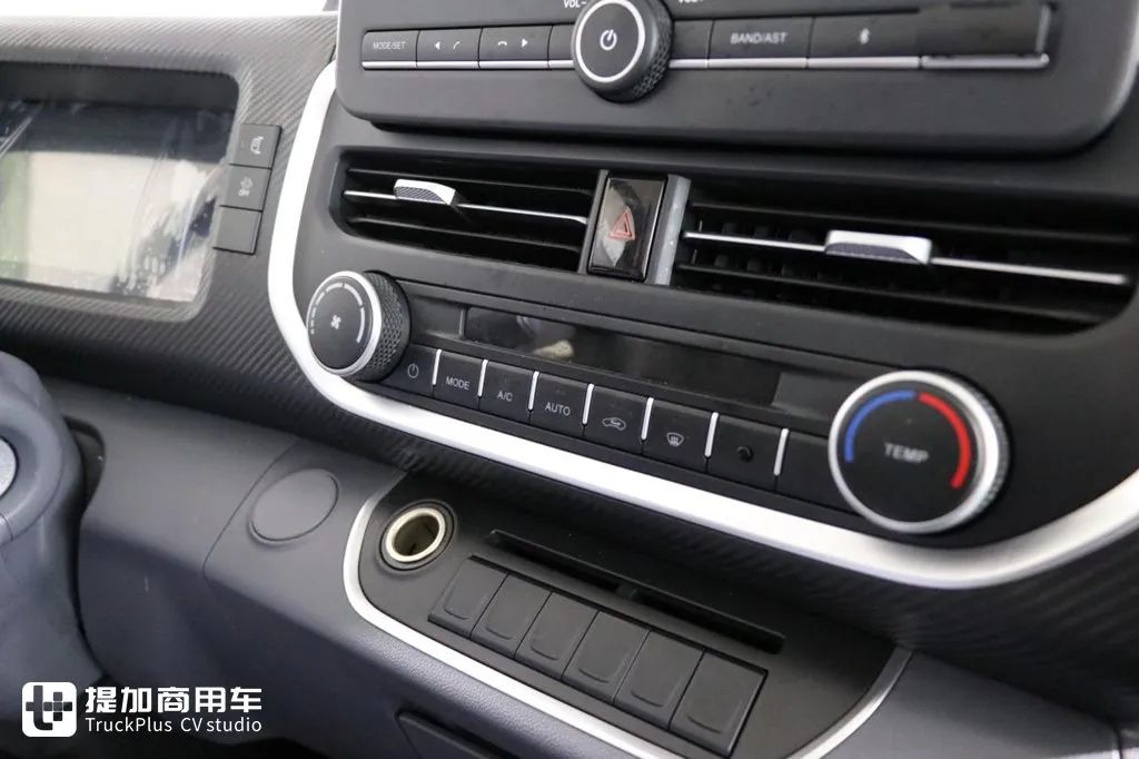 空调为自动恒温空调,调整好温度后按下AUTO,车内便可自动恒温,无需驾驶员频繁的去操作冷热旋钮。在轻卡当中,这个也是少见的配置。