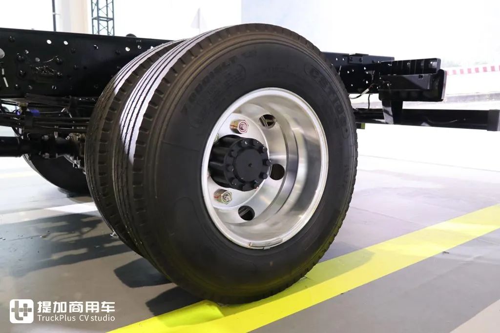 后驱动桥采用江铃自主的大吨位单级减速桥,搭配铝合金轮毂,在降低自重的同时也有着良好的散热性能。制动系统方面,凯运+山区版车型采用了更宽、摩擦系数更高的刹车蹄片,制动距离降低20%。