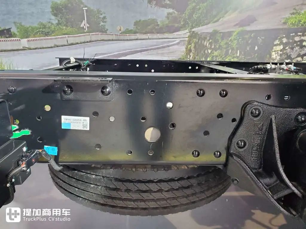 江铃凯运+山区版的车架的材料为QStE650高强度钢材,直通梁采用的是216mm的断面尺寸,车架宽度则可以达到900mm。这样一来,车辆的承载能力强,其次,行驶稳定性也高,并且高强度钢材的加入也能缓解30%的金属疲劳,让车辆使用周期和寿命更长。