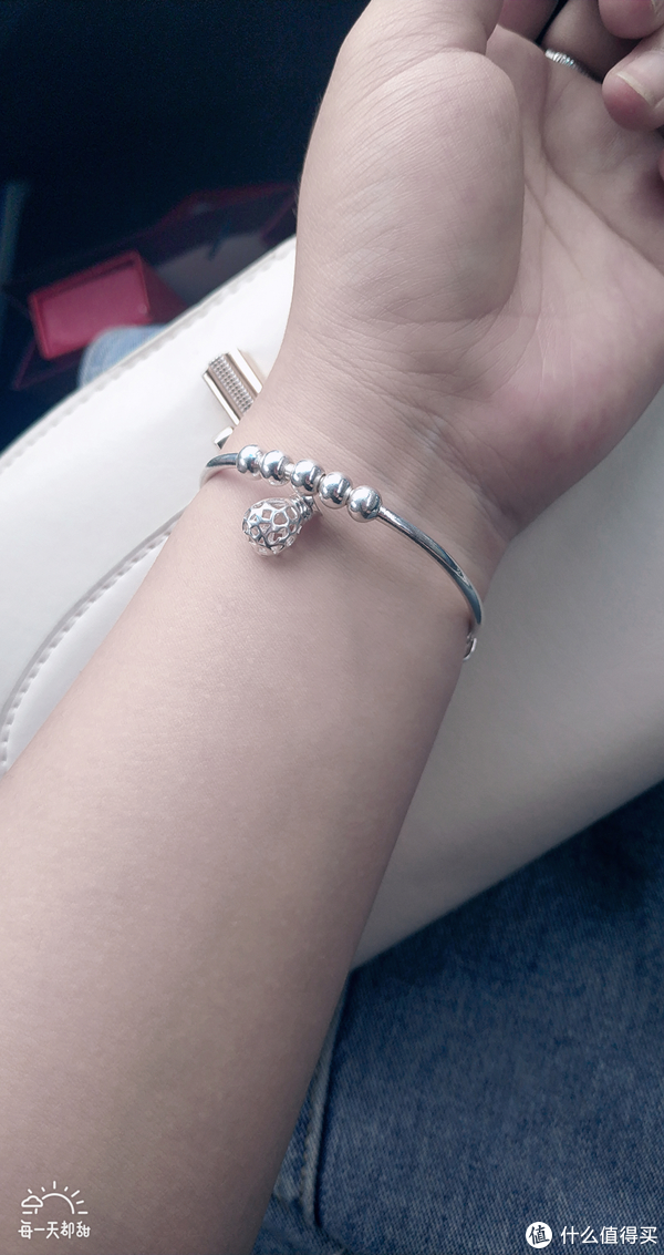 我想女孩子都会在意自己的第一个银镯子吧,反正我是对第一个镯子很执着的那种,他送给我的情人节礼物真的是很惊喜,自古以来,男生送女生银手镯,代表的是爱情的意思,银手镯也有着定情的意思,还有一方面是女孩子手上有一个银镯子,寓意着保平安,圈住今生所有偏爱,守护一生一世。这样的寓意也太完美了,所以,男朋友给我买的的镯子真的挺让人感动的。