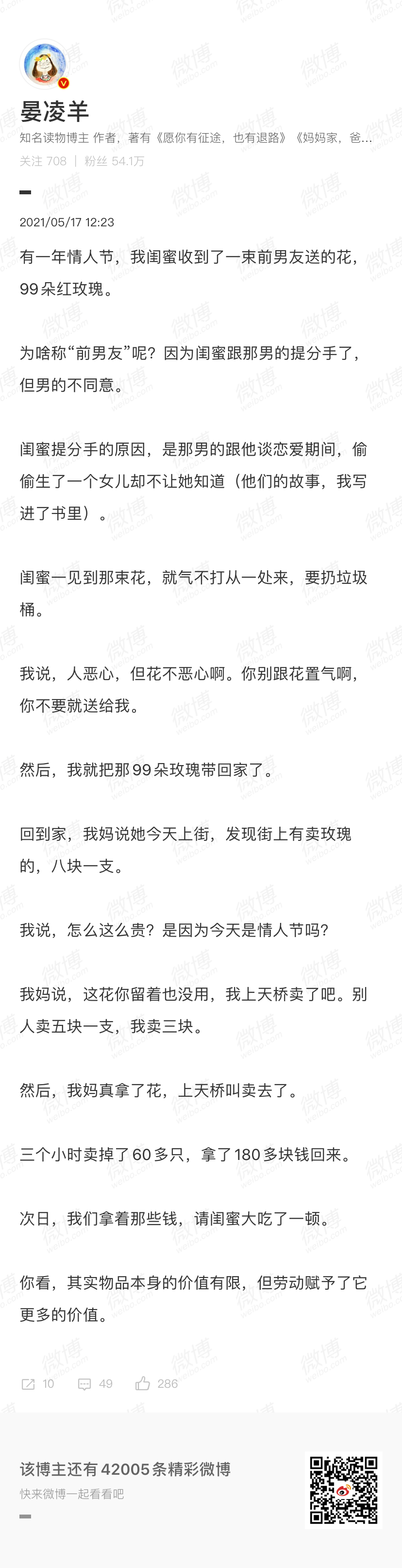 为了让逗号体验一下赚钱的辛苦与兴奋,今晚我应该去广州太古汇附近翻翻垃圾桶,然后站天桥上去卖散装花儿。这种事儿我妈也干过………