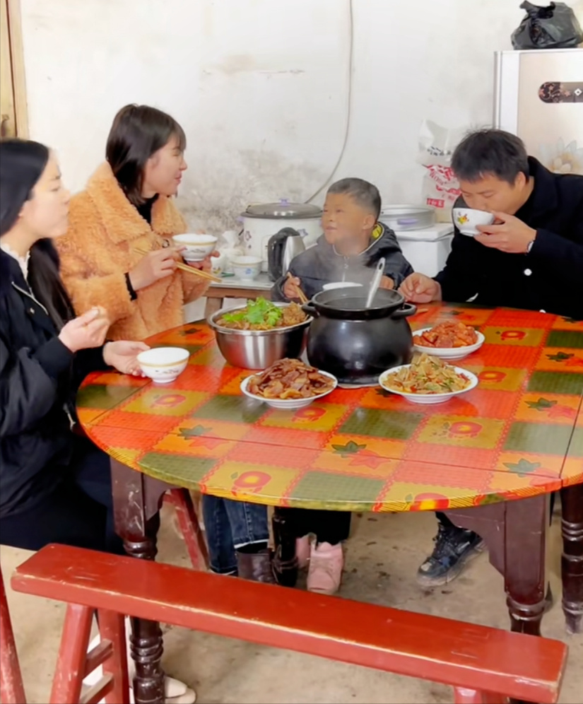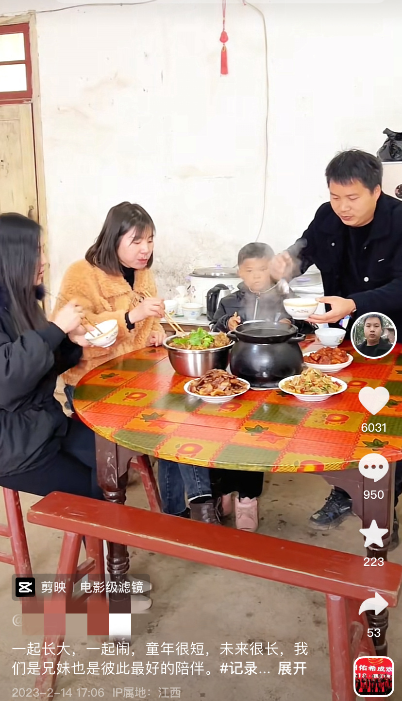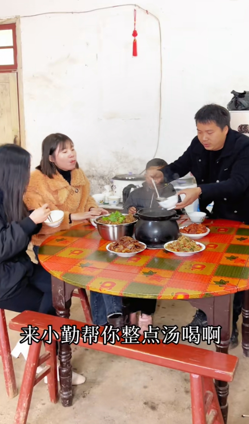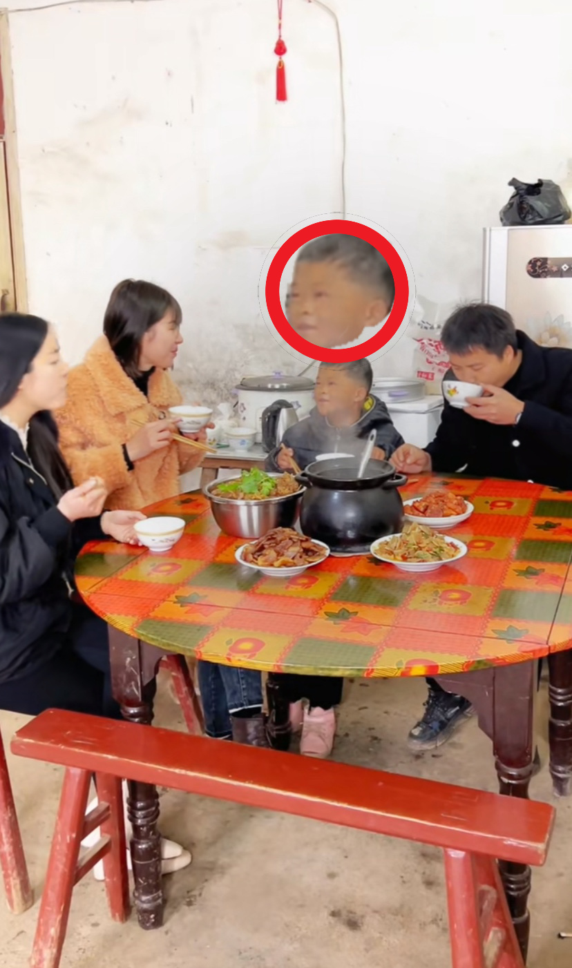 视频时长有247秒,但直到第196秒时小马云范小云才出镜,出镜时间仅占视频时长的20%。坐在桌边的小马云呆呆地,双眼直勾勾地看着桌上的美食。而表哥黄新龙人很不错,还懂得为范小勤盛饭。