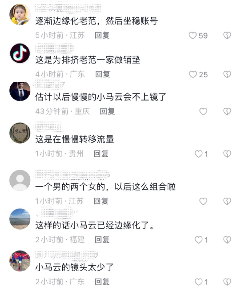 黄新龙的这次视频调整,令网友们很不适应,毕竟大家是冲着小马云一家来的,而非表哥一家。于是有网友分析这是黄新龙打算逐渐边缘化老范一家,慢慢转移流量改变人设,慢慢地小马云出镜的时间也会越来越少。