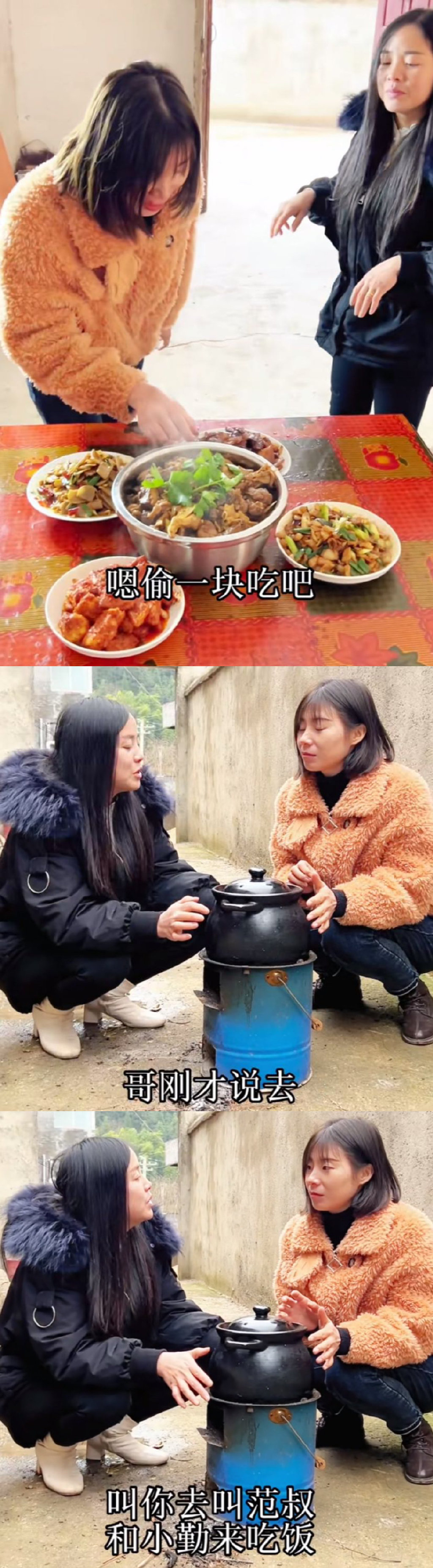 范小勤并没有马上吃饭,而是一脸呆呆地望向了身边的女演员,露出一脸痴笑的表情。大概是被看的不好意思了,女演员便以微笑回应,场面可谓是一言难尽。范小勤爸爸范叔为何没有出镜,小马云给出的回应是:没在家。范叔是残疾人,大部分时间都是蜗居在村里,很少出门,所以此理由并不可信。