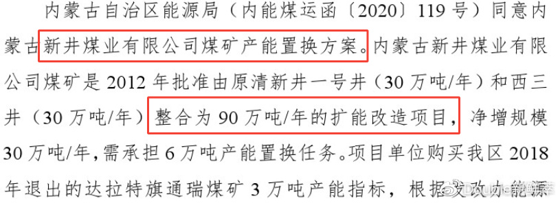 关于内蒙古新井煤业有限公司煤矿产能置换方案的公示_手机新浪网:https://finance.sina.cn/futuremarket/gypzx/2020-04-13/detail-iirczymi6039630.d.html