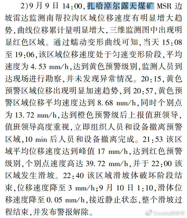 这种技术在内蒙也有应用,比如2021年9月9日扎哈淖尔露天煤矿发生了一起滑坡,就被成功预警了。