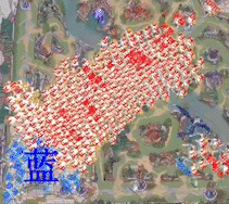 因为,反转才是这个游戏的看点。游戏过程十分激烈,战况经常会陷入胶着。比如这一局中,在红方的猛烈攻势下,蓝方地图一半被占领,人数骤减。