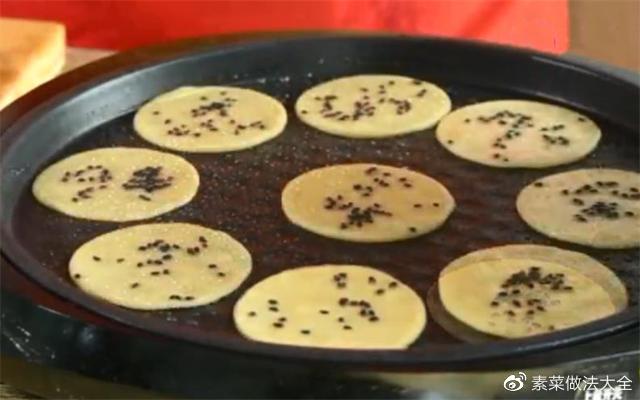 3.在每个小面饼上刷一层油,撒上黑芝麻。