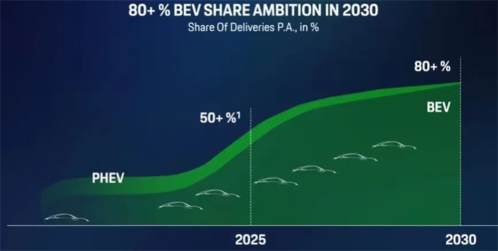 柯时迈的自信,很大程度上来源于保时捷坚定推行的电气化战略。在财报发布会上,保时捷正式启动了“迈向20之路”计划,表示要让保时捷长期的销售回报率达到20%以上,为此,由e-mobility(电动车)和e-Fuels(可替代性合成燃料)构成的“双e战略”,将成为保时捷长期坚定推行的电气化战略。其具体规划包括了2023年问世的纯电动Macan,20年代中期推出的纯电版718和纯电版Cayenne,一款新的定位于Cayenne之上的纯电动SUV等一系列措施,最终的目标是到2030年让纯电动车型占所售新车的80%以上。