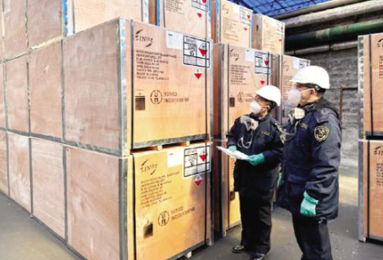 海关关员对出口危险品进行检验监管。