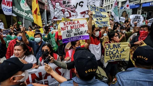 对于美国副总统哈里斯的要求,菲律宾民众举行了大规模示威,其中还包括学生联盟等反美组织。抗议者表示,菲律宾要和平不要军事对抗。不希望成为美国的代理人卷入战争。