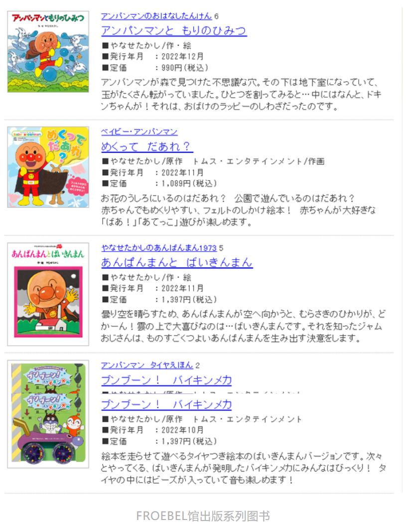 可以看到,面包超人的绘本、动画、剧场版长年来均保持着频繁更新,这是维持人气的要素。