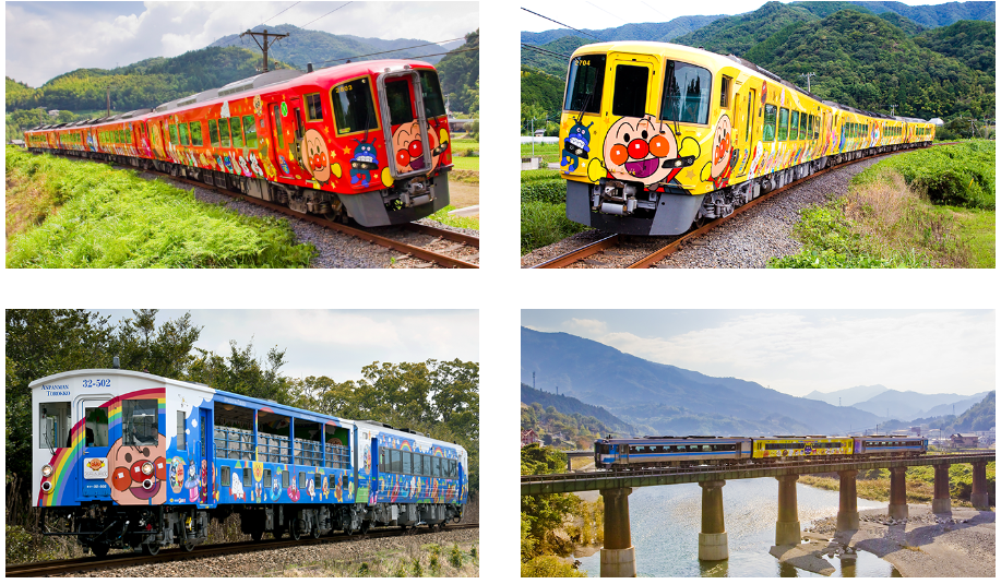 2000年10月,在面包超人原作者的故乡高知县,JR四国开通了面包超人特快专列,随后几年相继开通了多辆列车,目前共计5种列车(21节车厢)。