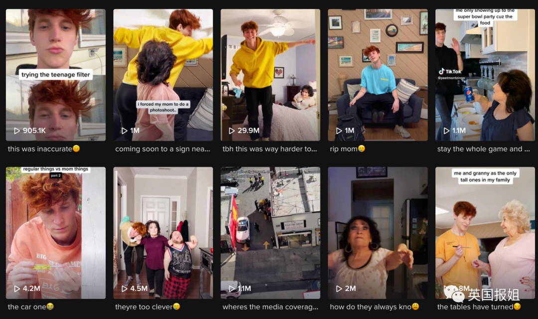 因为幽默积极的视频,加上妈妈开朗大方很有表演欲,皮特的视频动辄就有几千万的浏览量,涨粉上千万,可以说是一夜爆红。