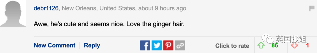“噢~他很可爱,人看着不错,喜欢他的红头发。”