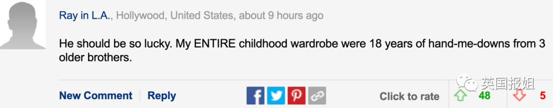 “他就好运啦,我18岁成年前穿的都是3个哥哥的旧衣服!”