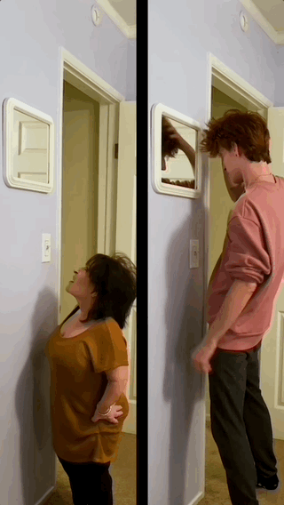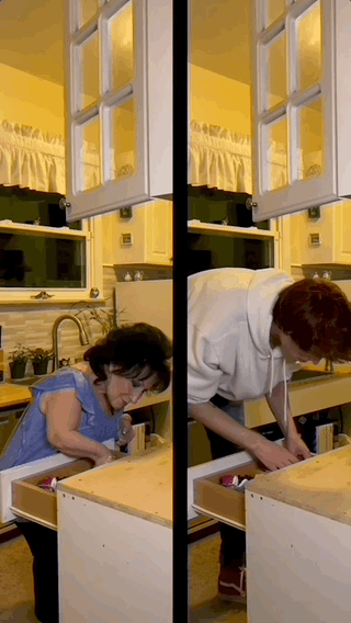 他和妈妈「比赛」看窗外风景、从高橱柜拿东西