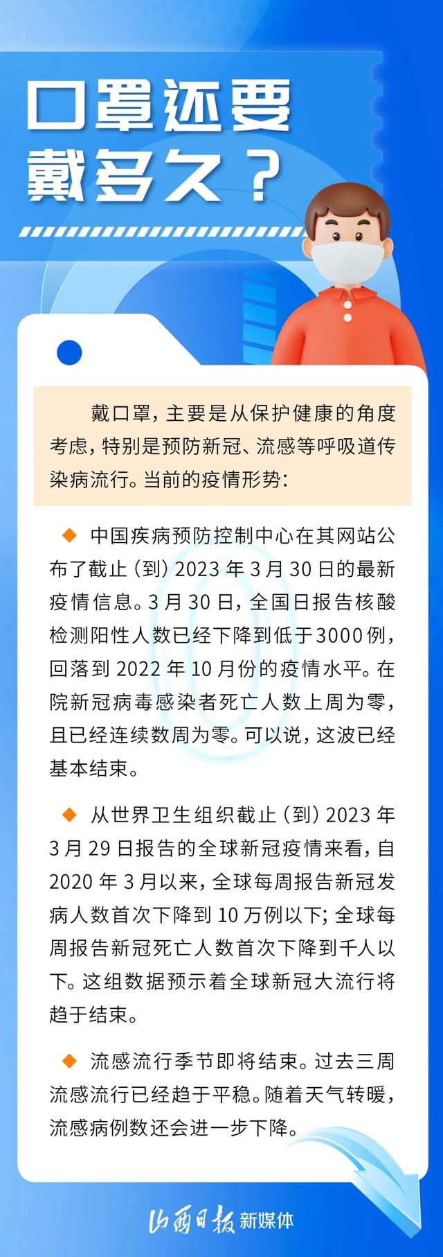 零字节资讯网2023年4月10日消息: 海报 | @太原人,口罩还要戴吗?最新专家研判来了 编辑: 中国玉王 零字节资讯网发布 140阅 0评 口罩还要戴多久 什么场合要坚持戴 什么场合可以不戴 中国疾控中心流行病学首席专家 吴尊友近日在微博发文回应 来源:山西日报 特别声明:以上文章内容仅代表作者本人观点,不代表新浪网观点或立场。如有关于作品内容、版权或其它问题请于作品发表后的30日内与新浪网联系。 赞微海报分享请继续点击阅读以下震撼之作:136幅锁魂 ×21密钥开玄伊甸园真容现世新疆于阗 点击上面零字节资讯网相机的圆圈生成这篇文章的奇异、神秘的海报然后将海报保存图片收藏,可发朋友圈