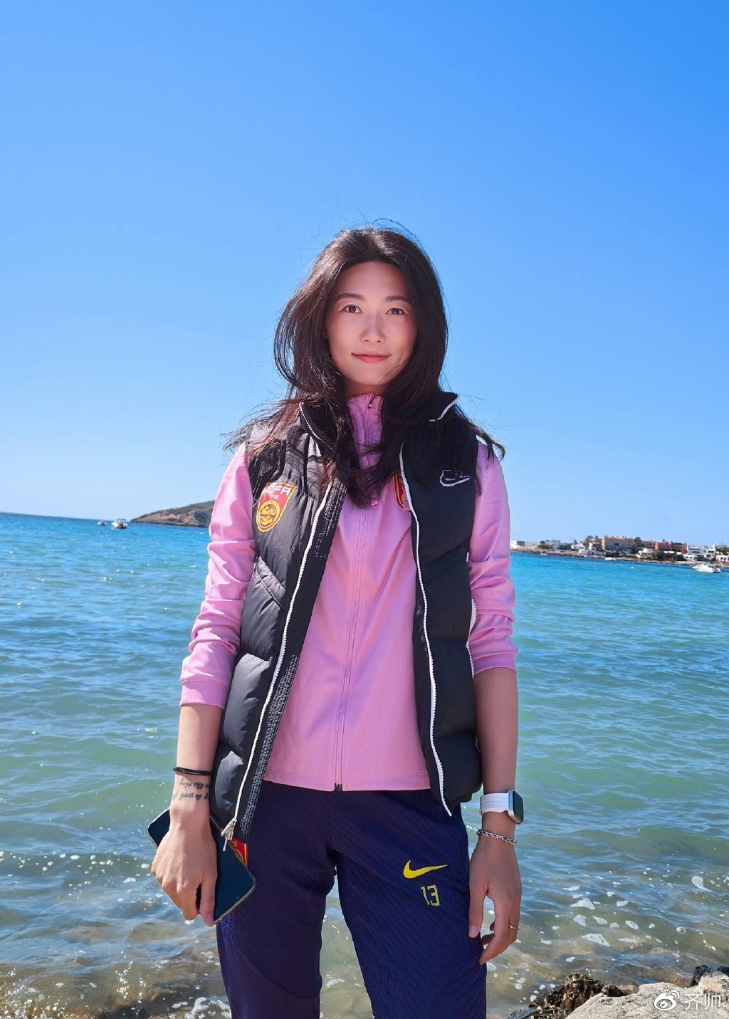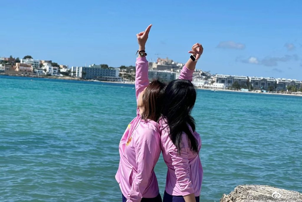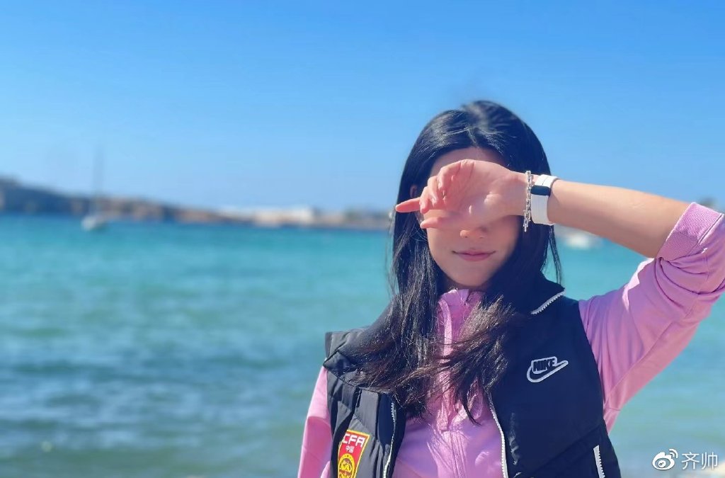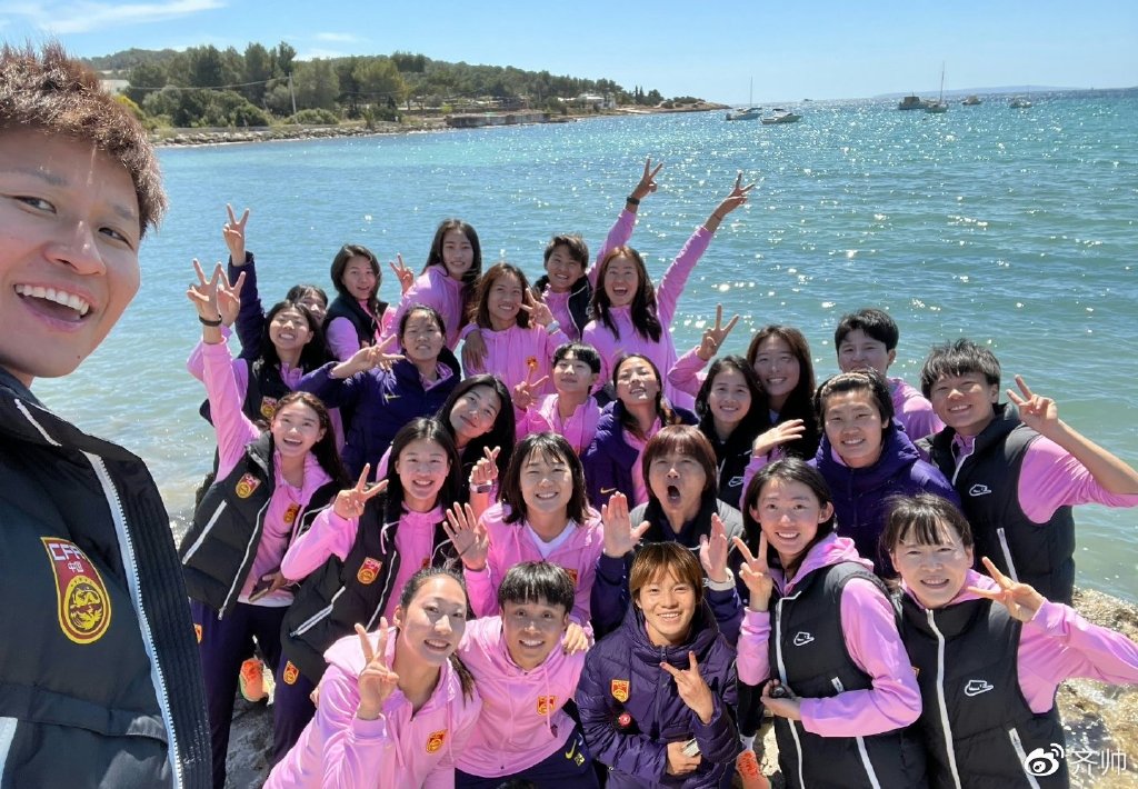 中国女足最新全家福出炉!主教练+25名球员,在西班牙海边拍合照