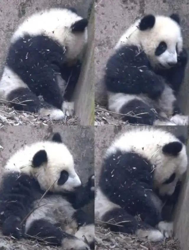 熊猫“福菀”因为天生脊椎疾病问题,造成先天性的后肢无力,下半身无法行走,只能用前爪拖动着爬行,不能爬树,甚至爬不上木架。