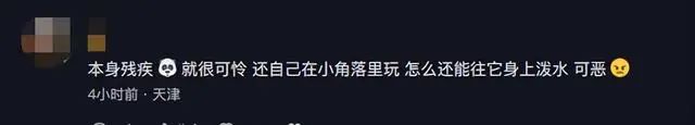 有网友表示,“福菀”被泼到水,也可能正是因为行动不便,躲闪不及。