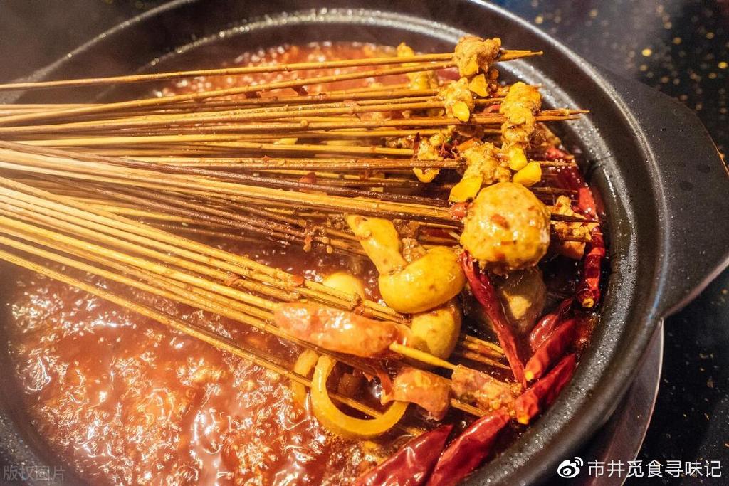 串串原本是四川地区的特色小吃,在川渝的大街小巷,随处可见大大小小的串串店铺,各家都有自己独特的锅底配方,热气腾腾的一锅红汤以及那一大把的竹签,把荤的、素的往竹签上一穿,几个朋友三三两两的围坐在一起,想吃什么自助的拿什么,丰俭由人,按照自己的喜爱来吃,气氛热闹轻松。