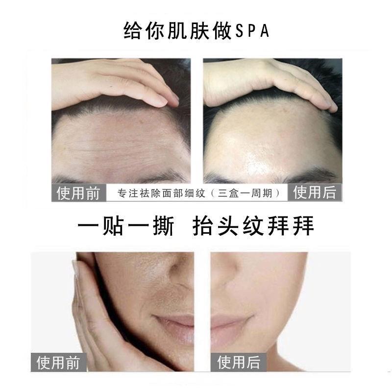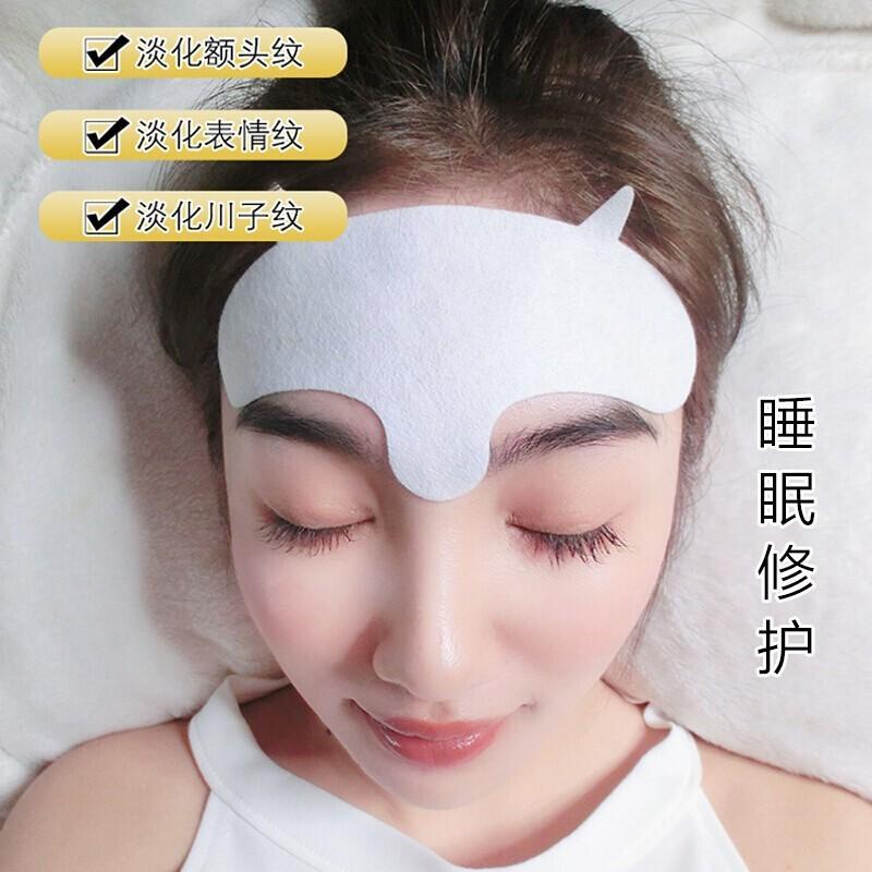 1.清洁面部后,将额头纹贴从透明塑料袋中取出,揭去双面胶面纸;