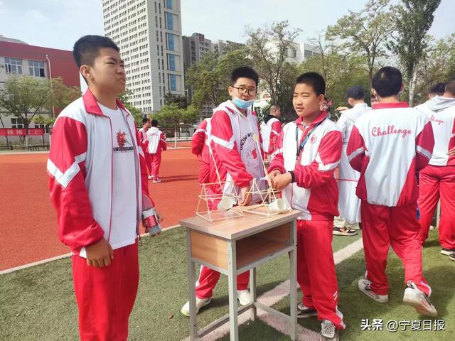 上午10时,宁夏大学附属中学整个操场上已被分割成多块“阵地”,抛石机攻城、纸桥承重、气弓箭比准、风动力反冲小车等十余个项目在不同的区域内展开角逐。“一千克有效,两千克有效!”纸桥承重比赛现场,吸引了很多学生围观。“纸桥用白纸做成,我们现场设计、制作,总重量不能超过120克。重点考虑如何让它达到最佳稳定度。”参赛学生介绍。最终,高一(11)班谢佳浩、陈祺祥、陈佳宾设计的纸桥以承重10千克的成绩获得高中组第一名。学生们纷纷议论,怀疑纸桥变成了“铁桥”。