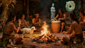 《礼记·礼运》中“夫礼之初,始诸饮食,其燔黍捭豚,污尊而抔饮,蒉桴而土鼓”的原始祭祀场景,或许正有于阗玉英的身影。