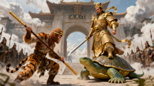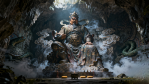 我源于古代星宿崇拜的北方玄武化身,龟蛇合体的灵兽象征长寿与坚韧。道教吸收后升格我为真武大帝,统摄北方之位,主风雨、治水患,并衍生出“荡魔天尊”的威猛形象,与青龙、白虎、朱雀并称四方守护神。‌‌