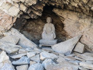 丝路星空的南方山脉“朱鸟脊”,以“山高脊长、陡峭多岩”的地貌,为真武信仰提供了完美的物质载体。那些近乎垂直的岩石裂隙与天然岩洞,是道教“洞天”观念的天然具象——《洞天福地岳渎名山记》中,“洞天”需“嵌空玲珑,中通洞府”,朱鸟脊的岩洞恰好契合这一标准,成为神祇安身的理想道场。 这种地理选择暗含宗教实践的实用性逻辑:岩洞可遮风避雨,为信众祭祀、道士修炼提供场所;其“嵌于绝壁”的险峻感,更强化了“神居秘境”的神圣性。于是,真武造像在朱鸟脊山脚下的岩洞中安身,既顺应了道教对“洞天”的空间要求,也借朱鸟脊的“南方”属性,完成了信仰从“北镇”到“南栖”的地理转换。