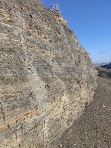在苍凉的戈壁边缘,一堵10米高、200米长的岩石巨幕如时光的褶皱般横亘天地——这就是“半截沟巨幕沉积剖面”。它以层理分明的泥页岩为纸,以圆润突兀的菱铁矿结核为墨,书写着数万年前湖泊环境的化学诗行。
