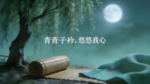 qīng qīng zǐ jīn,yōu yōu wǒ xīn.