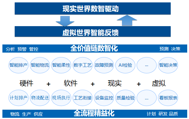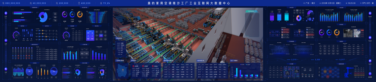 美云智数“M.IoT数字孪生技术”推动工业互联网、大数据、人工智能与实体经济的深度融合,促进先进制造业的传统产业优化升级,通过虚拟工厂仿真,结合MES实际反馈的工厂运作情况,不断优化工厂的制造效率,以提高产品的品质以及精准交付,优化设备与机器人作业,实现数字孪生,加速智能制造发展,更大范围、更高效率、更加精准地优化生产和服务资源配置,促进企业产业转型升级。