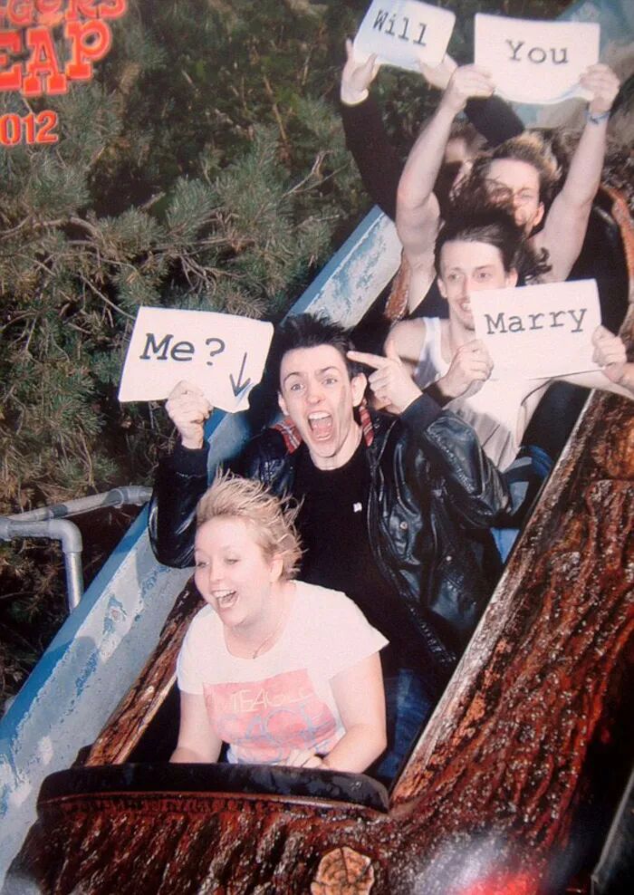 不过值得欣慰的是,不是所有人都是为了搞怪才来拍照片。有些情侣甚至还会通过过山车完成求婚这一终生大事。