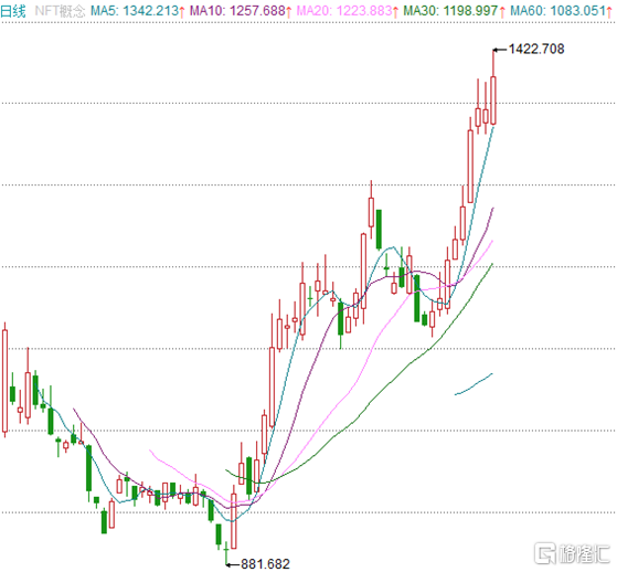 反映到二级市场中,A股的NFT概念已经连续9个交易日上涨,涨幅近25%。