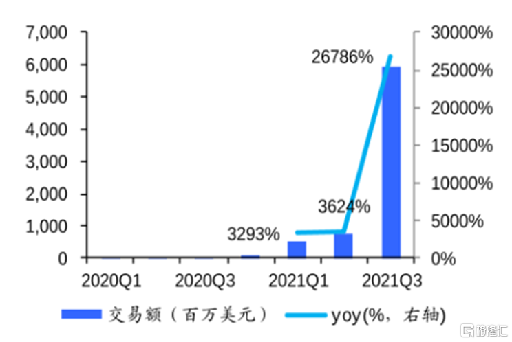 NFT单季度交易总额,来源:NonFungible,国泰君安证券