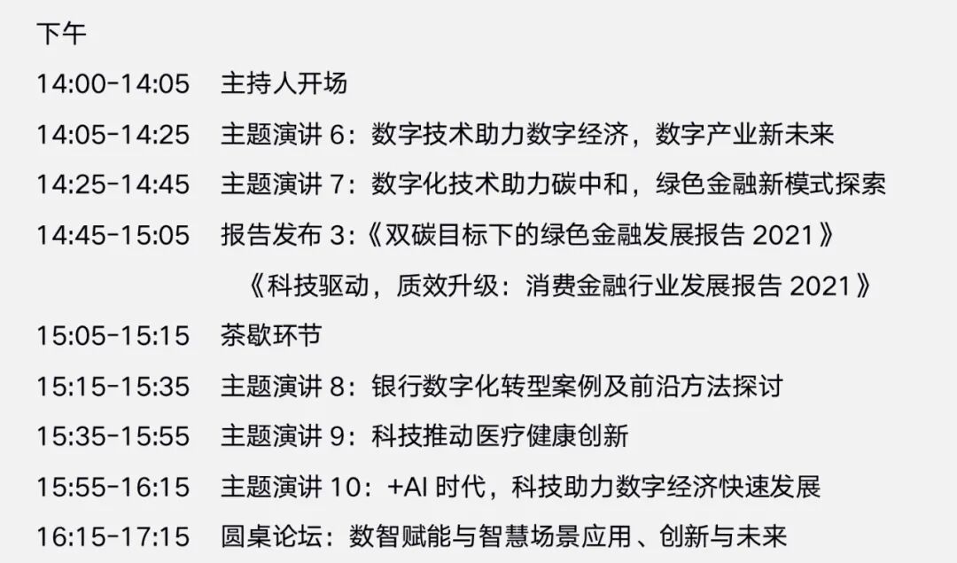 在此次年会上,《中国数字科技服务商图谱报告2021》、《核心技术崛起:中国金融信创产业发展报告2021》、《中国数字化小微金融创新实践报告2021》、《双碳目标下的绿色金融发展报告2021》、《科技驱动,质效升级:消费金融行业发展报告2021》五大报告将集体亮相。