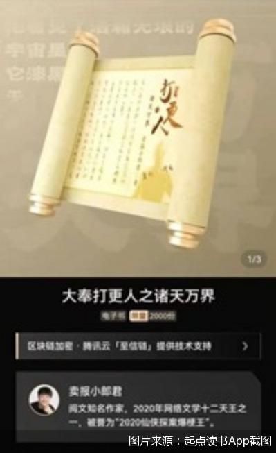 据悉,《大奉打更人》由网文作者卖报小郎君所作,2020年6月连载于起点中文网,创造了该网站最快十万均订、仙侠第一本十万均订、最高订阅纪录创造者三项纪录,全网粉丝超过900万。除此次发布的数字藏品外,该部作品也在进行影视、动画、漫画等内容形式的改编创作。