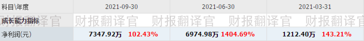 到了2021年这家企业的净利润连续出现了增长,并在第三季度完成了7348万元的业绩,同比增长了102%。
