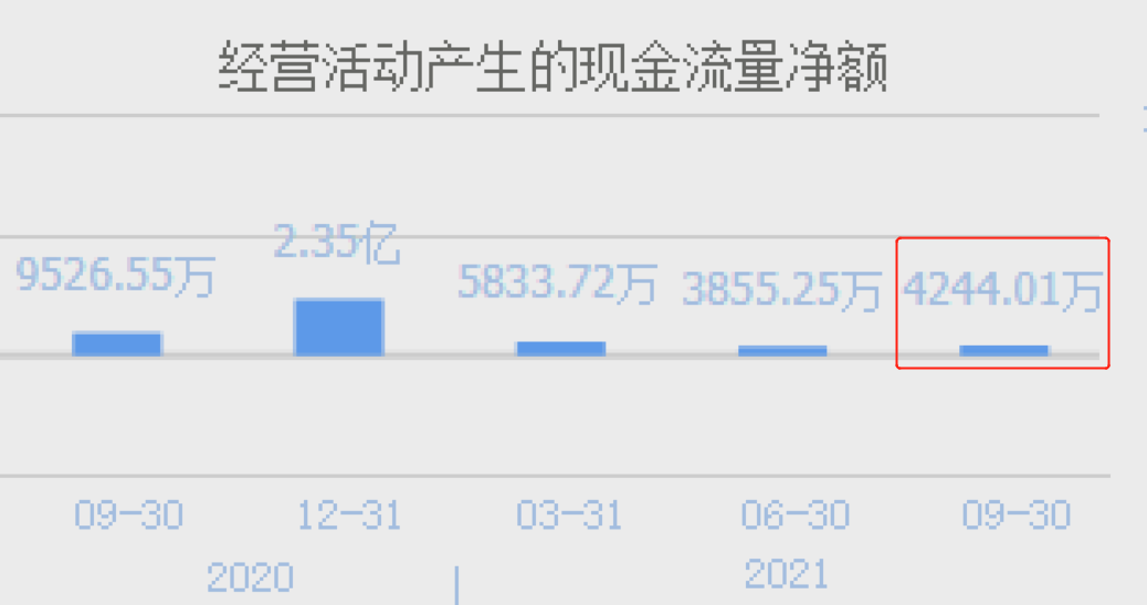 2021年第三季度,公司的净利润为7347.92万元,然而因经营活动而实际赚到的现金净额却只有4244.01万元。
