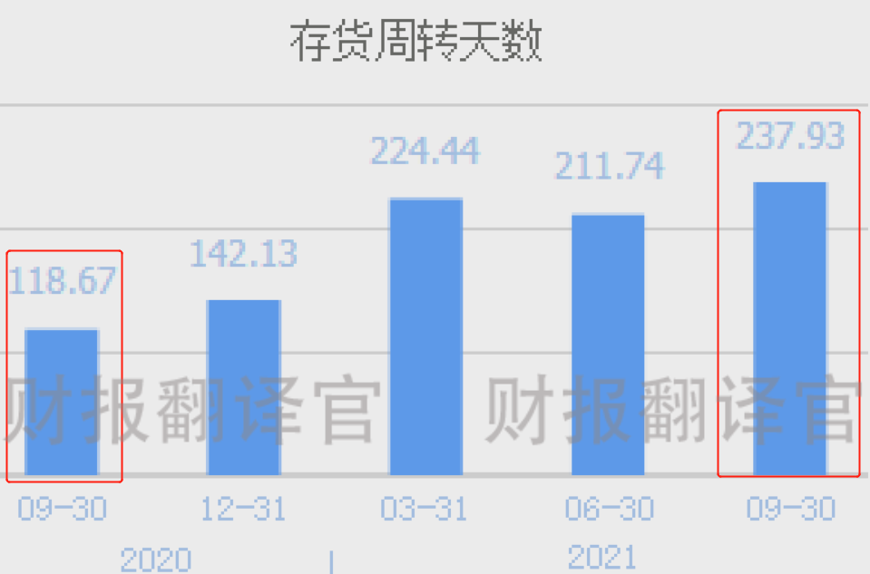 正常情况下企业销售速度的放缓是因为产品的滞销,而这家公司销售速度的放缓却还有另外一个原因,那就是2021年第三季度的存货大幅增加了。